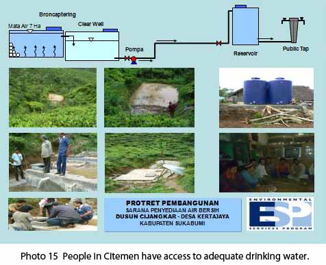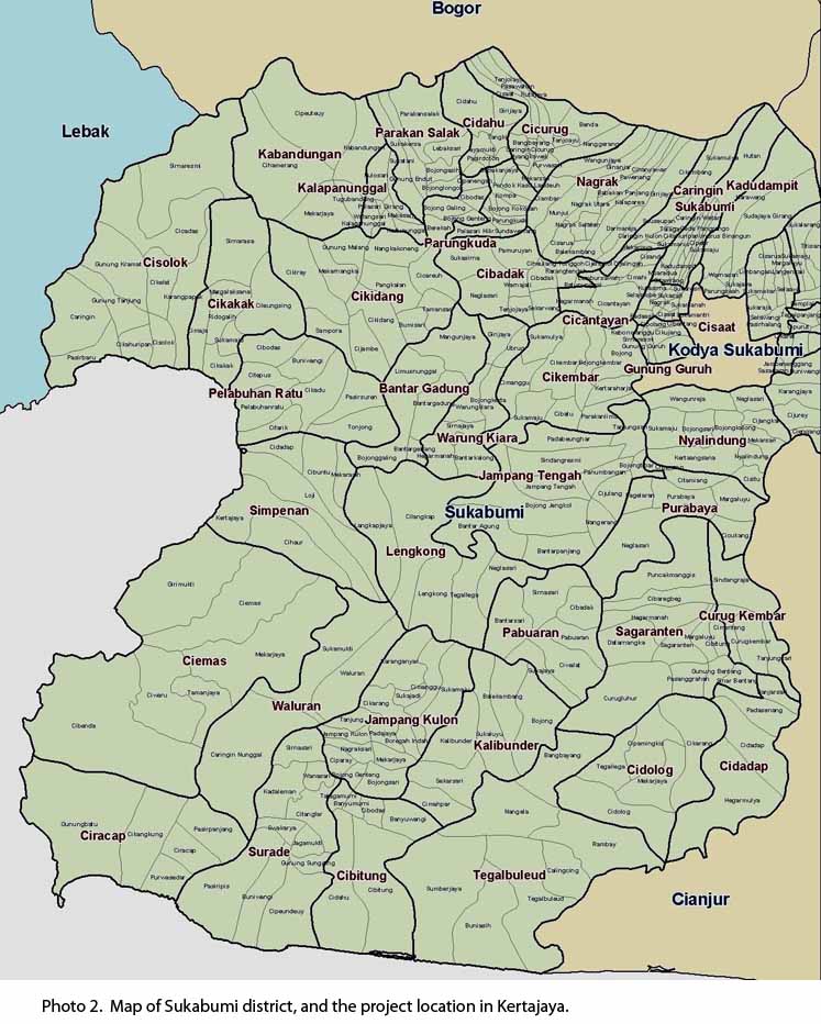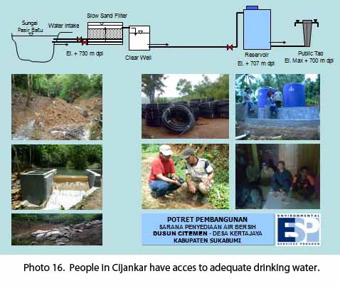 The Objectives Improve people access to adequate water supply services in 3 sub-villages: Cijangkar, Citmen, and Cisantri in Kertajaya village, Simpenan sub-district, Sukabumi district, West Java Province. The three sub-villages have a total population approximately 450 households. | |||||